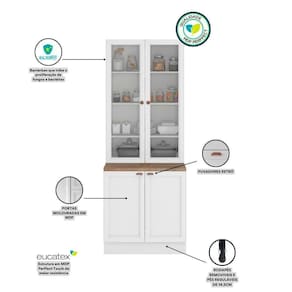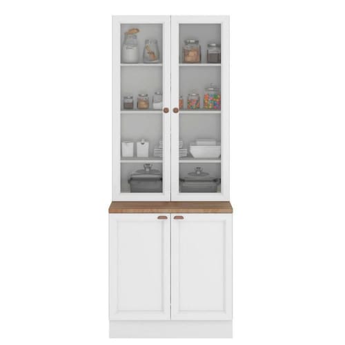 Paneleiro Cristaleira 4 Portas Unna Poliman Branco A Cristaleira Unna da Poliman Moveis e um produto elegante com excelente espaco interno. Sao 4 portas de bater sendo 02 delas molduradas com vidro transparente, dobradicas reforcadas de 35mm, 4 prateleiras internas, puxadores modelo retro em polimero com acabamento em alta cobertura para deixar seu movel ainda mais elegante, contem pes em PVC regulaveis ao piso de 14,5cm que permitem o nivelamento perfeito, tambem acompanha rodapes removiveis com presilhas modelo click que facilita na hora de fazer a limpeza. Estrutura em MDP Perffect Touch de maior resistencia e com protecao Bacterban que inibe a proliferacao de fungos e bacterias na superficie do movel, as portas sao almofadadas/molduradas em MDF inspiradas nas classicas cozinhas . Produto ecologicamente correto com embalagens preparadas para evitar e permitir que o produto chegue em perfeito estado em sua casa. Perfeita combinacao com os mais variados ambientes. Qualidade que so a Poliman oferece em seus produtos. Dimensoes Altura: 213 cm Largura: 70 cm Profundidade: sup. 31 / inf. 50 cm Peso: 49,3 Kg