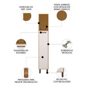 Conta com duas portas, a superior tendo detalhe em ripado gráfico, que confere um toque de elegância e combina com diversos estilos de decoração. As dobradiças metálicas reforçadas e os puxadores em polímero proporcionam uma abertura suave ao Paneleiro Simples.
