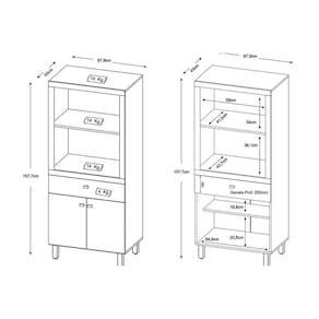 Paneleiro de Cozinha BL3305 c/ 2 Portas 1 Gaveta e 2 Nichos p/ Forno 68cm Branco - Tecno Mobili