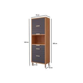 Paneleiro de Cozinha Eloise c/ 3 Portas Basculantes Riscadas 1 Nicho p/ Forno e 2 Gavetas 70 cm Freijo/Titanium - MGM