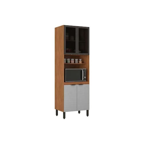 Paneleiro de Cozinha Firenze Torre Quente Forno c/ Prateleira 4 Portas c/ 2Vidro 70x218cm Amendola/Nude Prime TX - Demóbile
