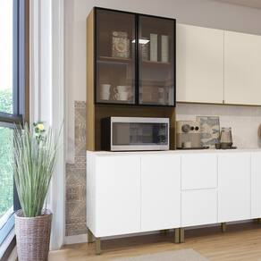 Paneleiro de Cozinha Portas de Vidro Minsk Branco/Freijó Z06 - Mpozenato