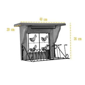 Com ele você pode colocar louças, copos e talheres para escorrerem com muita praticidade. Além disso, a parte superior é uma prateleira que podem ser colocados vários temperos e um porta pano de prato, ficando tudo sempre a mão em um único nicho, ajudando na organização de sua cozinha e facilitando na hora do preparo de alimentos. Se não bastasse tudo isso, ainda possui decorações de galinhas, flores e panelinhas. Será uma obra de arte com utilidade na sua cozinha.