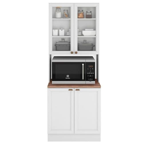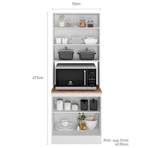 Paneleiro Duplo 1 Nicho 4 Portas Unna Poliman Branco O Paneleiro Duplo para Forno ou Micro-ondas Unna da Poliman Moveis e um produto elegante com excelente espaco interno. Sao 4 portas de bater sendo 02 delas molduradas com vidro transparente, 3 prateleiras internas, dobradicas reforcadas de 35mm, possui um espaco para micro-ondas ou forno ( x x , puxadores modelo retro em polimero com acabamento em alta cobertura para deixar seu movel ainda mais elegante, contem pes em PVC regulaveis ao piso de 14,5 cm que permitem o nivelamento perfeito, tambem acompanha rodapes removiveis com presilhas modelo click que facilita na hora de fazer a limpeza. Estrutura em MDP Perffect Touch de maior resistencia e com protecao Bacterban que inibe a proliferacao de fungos e bacterias na superficie do movel, as portas sao almofadadas/molduradas em MDF inspiradas nas classicas cozinhas . Produto ecologicamente correto com embalagens preparadas para evitar s e permitir que o produto chegue em perfeito estado em sua casa. Perfeita combinacao com os mais variados ambientes. Qualidade que so a Poliman oferece em seus produtos. Dimensoes: Altura: 213 cm Largura: 70 cm Profundidade: sup. 31,0 / inf. 50,0 cm Peso: 44,6 Kg