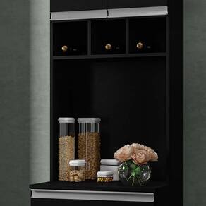 Com estrutura MDP 15mm, esse paneleiro conta com ótima repartição interna, nichos garrafeiros e espaço sobre o tampo para você dispor eletros, itens decorativos ou o que mais você precisar que fique sempre fácil de encontrar. Ah, já a gaveta pode servir de armazenamento para talheres ou panos de pratos. Em outras palavras, mais armazenamento e mais organização na cozinha, então, você só tem a ganhar com esse paneleiro!