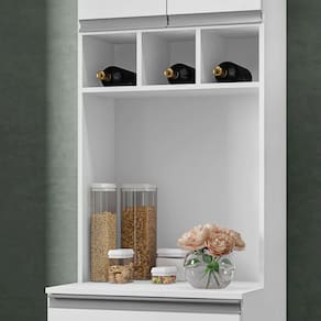 Com estrutura MDP 15mm, esse paneleiro conta com ótima repartição interna, nichos garrafeiros e espaço sobre o tampo para você dispor eletros, itens decorativos ou o que mais você precisar que fique sempre fácil de encontrar. Ah, já a gaveta pode servir de armazenamento para talheres ou panos de pratos. Em outras palavras, mais armazenamento e mais organização na cozinha, então, você só tem a ganhar com esse paneleiro!