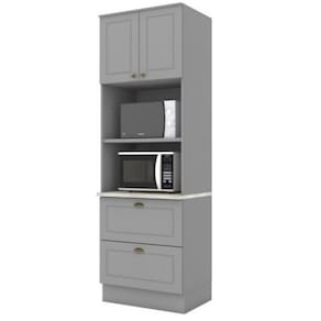 Torre Quente Modulado, estrutura em MDF 15mm, acabamento com pintura UV. Composto por 2 portas de bater com dobradiças metálicas, gavetas com corrediças telescópicas, prateleira interna, espaços para forno ou microondas, puxadores em metal, este armário é um modulo avulso da composição Cozinha Modulada Americana e é ideal para compor sua cozinha como desejar. Um novo conceito inspirado nas clássicas cozinhas estilo americano, seu design contemporâneo e diferenciado embeleza qualquer ambiente.