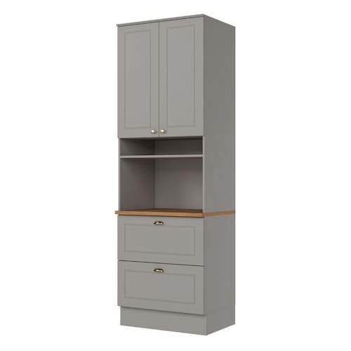 Paneleiro Duplo Americana 220cm Para 1 Forno Henn Cinza / Nature Paneleiro Duplo Americana 220 cm Para 1 Forno Henn Composto por 02 portas de bater com dobradicas metalicas, gavetas com corredicas telescopicas, prateleira interna, espaco para forno ou micro-ondas, puxadores em metal, este armario e um modulo avulso da composicao Cozinha Modulada Americana e e ideal para compor sua cozinha como desejar. Um conceito inspirado nas classicas cozinhas estilo americano, seu design contemporaneo e diferenciado embeleza qualquer ambiente.