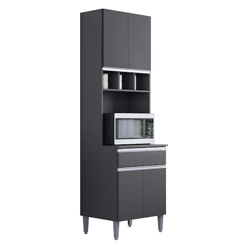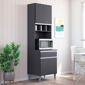 O Paneleiro Duplo Andréia, versátil para uso isolado ou como complemento a Cozinha Modulada Andréia, é a escolha ideal para quem busca qualidade e sofisticação ao planejar sua cozinha. Sua estrutura é fabricada em MDP, com um acabamento em pintura UV. O móvel é composto por quatro portas equipadas com dobradiças metálicas, um tampo com espaço destinado para micro-ondas ou outros aparelhos domésticos, uma gaveta com corrediças telescópicas, três nichos para garrafas, prateleira interna para utensílios de cozinha, puxadores em alumínio e pés reguláveis.