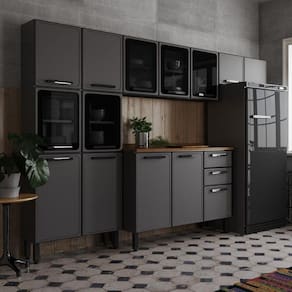 Paneleiro Duplo Bertolini Estilo 7039 Aço 6 Portas 2 com Vidro 80cm - Cinza/Grafite