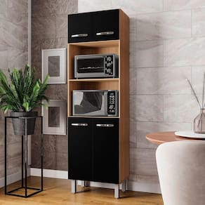 Paneleiro alto com quatro portas e dois nichos centrais para eletrodomésticos exemplo micro-ondas, forno elétrico. Oferece amplo espaço interno para utensílios e mantimentos, pés elevados que facilitam a limpeza e design moderno que otimiza o espaço da cozinha.Dimensões do Paneleiro:Altura: 197 cmLargura: 60 cmProfundidade: 37,8 cmCaracterísticas Técnicas:- Chapa MDP- Caixote 12mm- Portas 15mm- Acabamento em pintura U.V- 04 Portas- Dobradiças metálicas- Puxadores plástico- Pés com regulagem- Altura pé 16 cmDiferenciais do Paneleiro Íris:- Material da Estrutura: fabricado com MDP12/15mm- Detalhes do Íris: Dobradiças Reforçadas; Puxadores Horizontais, finalizados com um excelente acabamento;Recomendações de limpeza:-Limpar com flanela limpa e seca. Não molhar o móvel e não expor em lugar úmido ou próximo de fontes de calor. Não usar produtos abrasivos.