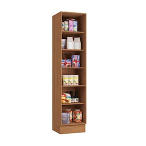 Para um melhor acabamento, a cristaleira conta com rodapés, mas acompanha as ferragens para ser montada suspensa, e se preferir, pode adquirir os pés separadamente, garantindo muita praticidade. A peça ideal para quem busca por otimização de espaço na vertical, medindo 220cm de altura, 50cm de largura e 52cm de profundidade, conta com duas portas e seis prateleiras, ideal para guardar louças e mantimentos, facilitando a organização e o preparo de receitas.
