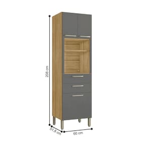 O Paneleiro possui três gavetas de tamanhos distintos que permitem liberdade para melhor organização do espaço, além de nicho para eletrodomésticos diversos e duas gavetas com ampla abertura garantida pelas corrediças telescópicas, para fechar, conta com puxadores ergonômicos feitos em plástico resistente.