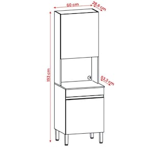 Dimensões: 60 cm (L) x 193 cm(A) x 53,3 cm(P);