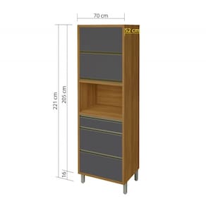 Altura: 221 cm Largura: 70 cm Profundidade: 52 cm Medida Micro: Alt 0,31 / Larg 0,64 / Prof 0,52 Produto 100 MDF de 3, 15 e 18mm Puxadores de Alumínio Porta basculante com pistão a gás Corrediça Telescópica com 03 estágios e abertura total 04 Pés em PVC reguláveis com acabamento pintado Acabamento/Pintura - Impressão de alta qualidade madeirado Suporte de peso de 20 à 40kg Garantia 3 meses