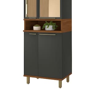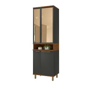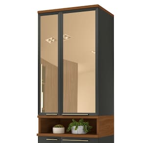 Design moderno e elegante: Acabamento em tons madeirados com pintura UV fosca Portas de vidro: Sofisticacao e visibilidade dos itens armazenados Puxadores silky em aluminio: Estilo e durabilidade Prateleiras internas: Organizacao eficiente para utensilios e mantimentos Pes com regulagem de altura: Estabilidade e adaptacao ao ambiente Fixacao com parafusos especiais: Seguranca e resistencia na montagem