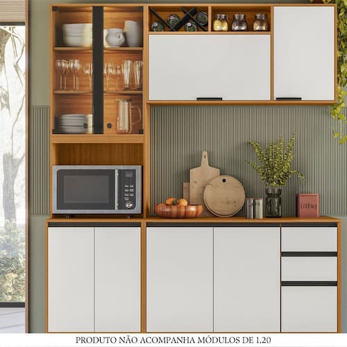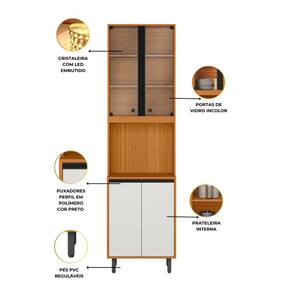 A Cristaleira 4 Portas Ravena Poliman ? a escolha perfeita para quem busca uma combina??o de eleg?ncia e funcionalidade. Com 4 portas de bater, sendo 2 delas com vidro transparente, ela traz a modernidade da ilumina??o em LED como um diferencial, oferecendo um toque de sofistica??o e ilumina??o especial ao ambiente. Ela conta com dobradi?as refor?adas de 26mm, 3 prateleiras internas e um compartimento exclusivo para micro-ondas -A.52cm x L.57cm x P.50cm-, proporcionando praticidade e aproveitamento de espa?o. Seus puxadores pretos em pol?mero agregam modernidade, enquanto os p?s regul?veis de 17cm em PVC garantem o nivelamento perfeito, adaptando-se facilmente a diferentes tipos de piso. Fabricada em MDP com acabamento em pintura UV, que confere maior durabilidade e resist?ncia. O acabamento acetinado nas portas proporciona um toque de sofistica??o, harmonizando perfeitamente com diferentes estilos de decora??o. Al?m de ser ecologicamente correto, o produto vem embalado de forma especial, garantindo que chegue em perfeito estado ? sua casa. A Cristaleira Ravena Poliman ? uma excelente escolha para quem busca qualidade, praticidade e design moderno, refletindo toda a confian?a que a marca Poliman oferece.