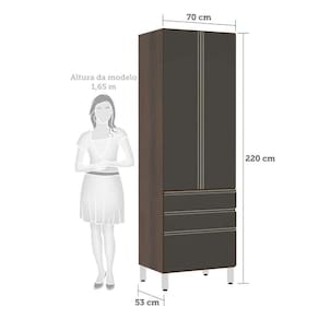 Paneleiro Torre 70cm 2 Portas 2 Gavetas 1 Gavetão Jade Luciane Móveis - Grafite