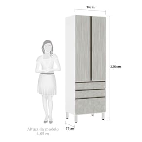 Paneleiro Torre 70cm 2 Portas 2 Gavetas e 1 Gavetão Pérola Luciane Móveis - Cinza Claro