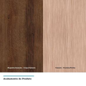Características Corpo/Caixaria: MDP - Nogueira Dourado - FF. Frontais: MDP - Acabamentos em BP. Dobradiças: Ø35mm Slow motion. Puxadores: Alumínio Gola - Inox. Pés: P S - Cromado Prateleiras: 3 Portas: 2 Gavetas: 2 Gavetões: 1 Portas em Alumínio Inox Reflecta Prata Montagem com Minifix, Parafusos e cavilhas.