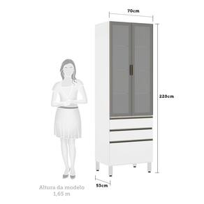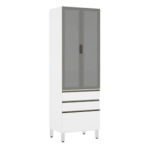 Paneleiro Torre 70cm 2 Portas com Vidro Reflecta Prata 2 Gavetas 1 Gavetão Pérola Luciane Móveis - Branco