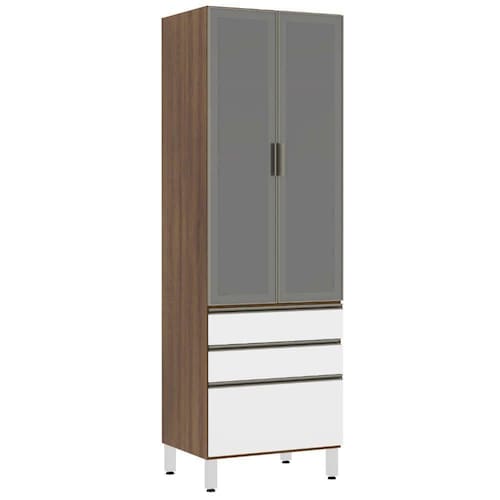 Paneleiro Torre 70cm 2 Portas Alumínio Inox Reflecta Prata 2 Gavetas 1 Gavetão Jade Luciane Móveis Nogueira Dourado Com Branco Polar Paneleiro Torre 70cm Luciane Jade tudo que sua cozinha precisa. Amplo espaço para organização para organização de seus utensílios , além de um designer inovador.