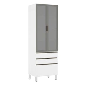 Paneleiro Torre 70cm 2 Portas Com Vidro Reflecta Prata 2 Gavetas 1 Gavetão Pérola Luciane Móveis Branco Polar Paneleiro Torre Cristaleira 70cm Luciane, tudo que sua cozinha precisa. Amplo espaço para organização de seus utensílios , além de um designer inovador.