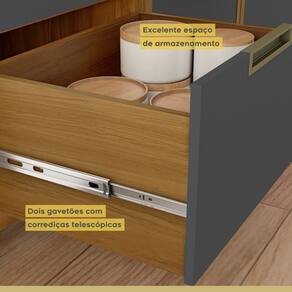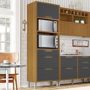 Paneleiro Torre Quente 1 Porta 3 Gavetas Imperatriz Nesher Móveis Freijó/grafite O Paneleiro Nesher Imperatriz tem design contemporâneo, robusto e é muito prático. Inspirada em cozinhas planejadas, está disponível em módulos, permitindo composições variadas, projetos exclusivos, conforme o espaço e o gosto do consumidor. Disponível em duas cores de porta, off-white e grafite, como o corpo sempre amadeirado freijó. Projetada para proporcionar praticidade e funcionalidade no uso diário, produzida com matérias prima de e ferragens tecnológicas de última geração. Todo o projeto foi pensado para embelezar seu Paneleiro com muita praticidade no uso e muita qualidade e durabilidade no dia a dia. Diferenciais únicos: - Modernas portas com abertura basculante e pistão a gás. - Modernos puxadores embutidos em alumínio na cor champanhe, beleza, qualidade e durabilidade. - Gavetas com corrediça telescópica abertura integral. - Ergonômicos gavetões com laterais e traseiros altos para armazenagem com de utensílios e mantimentos. - Paneleiro com nicho para micro-ondas. Medidas Altura: 221cm Largura: 70cm Profundidade: 52cm