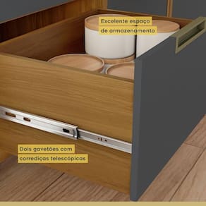 - Ergonômicos gavetões com laterais e traseiros altos para armazenagem com segurança de utensílios e mantimentos.