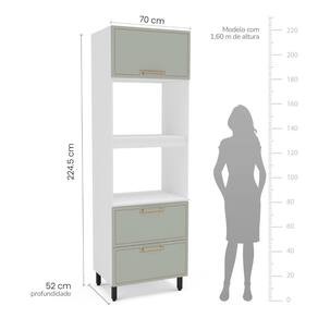 Características: Estrutura MDP 2 Portas basculantes 1 Gaveta 2 Prateleiras Corrediça telescópica 2 nichos para forno e micro-ondas Acabamento FF Pintura UV Peso suportado de 5 a 10kg distribuídos