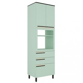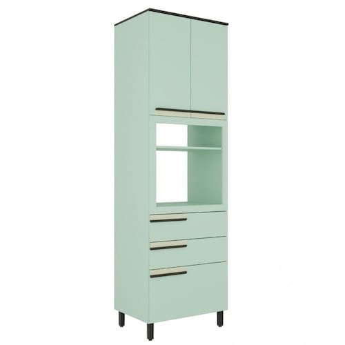 Características: 2 Portas 3 Gavetas 4 Prateleiras Acabamento pintura UV Acompanha cavilhas e parafusos Corrediças telescópicas Dobradiças caneco 35MM com amortecimento Estrutura em MDP 15mm Fixação com minifix Pés c/ sapata regulável plástica Puxadores em madeira
