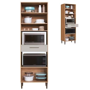 O Paneleiro Torre Quente 3 Portas 1 Gaveta Jade Delmarco é um módulo funcional e versátil para sua cozinha. Com estrutura em MDP 15 mm, possui 3 portas, sendo uma basculante com pistão a gás, além de 1 gaveta com corrediças telescópicas para um deslizamento suave. Conta com dobradiças com amortecimento, prateleira interna, 2 nichos para forno e micro-ondas, e puxadores em alumínio. Seus pés reguláveis garantem estabilidade, tornando-o uma excelente escolha para compor sua cozinha de maneira personalizada.