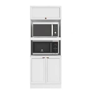 Características: Estrutura em MDP Portas molduradas em MDF 2 portas de bater 1 porta basculante Pistão a gás Dobradiças de 35mm 2 nichos para forno ou micro-ondas Nicho superior A.46 x L.67 x P.48cm Nicho inferior A.40 x L.67 x P.48cm Prateleira interna Puxadores retrô em polímero Pés reguláveis em PVC de 14,5 cm Rodapés removíveis com presilhas modelo click