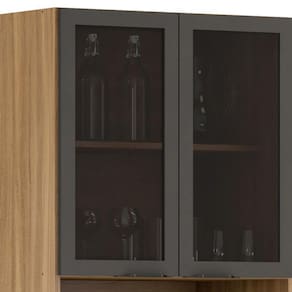 Características: Estrutura em MDP 12mm e 15mm 4 portas -2 de vidro e 2 em MDF- Dobradiças metálicas Puxador em ABS 3 prateleiras Nicho para forno elétrico ou micro-ondas Suporta até 36 kg totais Acabamento em Pintura UV