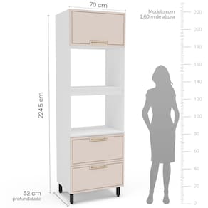 Paneleiro Torre Quente 70cm 2 portas basculantes 1 gaveta Amara Branco Creme Politorno Móveis - Branco | Bege