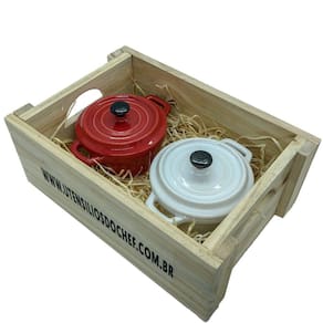 Caixa em pinos feita artesanalmente com duas panelinhas redondas.