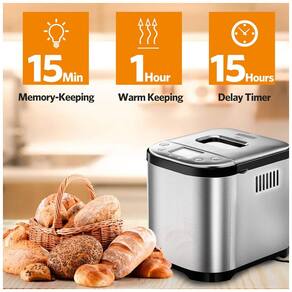 15 Menu Automático e Painel Digital LCD Mais do que uma máquina de fazer pão, a máquina de pão 1829 CARL SCHMIDT SOHN oferece 15 menus para você escolher, incluindo diferentes tipos de pão, massa, bolo e iogurte. Com o painel digital intuitivo de LCD, é fácil operar e fazer seu delicioso pão caseiro. Desfrute da sua deliciosa comida caseira com a máquina de fazer pão 1829 CARL SCHMIDT SOHN 1 H Auto Keep Warm 15 H Delay Timer Esta máquina de fazer pão é suportada com desempenho de preservação de calor, a configuração de manter quente pode manter o pão fresco a uma certa temperatura por 1 hora após o término da fabricação do pão. Com o Delay Timer, você pode configurá lo com até 15 horas de antecedência. Basta configurar o timer e ir dormir, você será acordado pelo cheiro de pão fresco da máquina de fazer pão. 900g de grande capacidade e janela de visão grande Nossa máquina de fazer pão possui 3 cores de crosta para pão claro , médio , escuro. Três cores de crosta trazem três tipos de sabor de acordo com suas preferências. Design moderno em aço inoxidável e material de alta qualidade Para fornecer um produto de alta qualidade, a 1829 CARL SCHMIDT SOHN adotou o aço inoxidável para esta incrível panificadora para garantir durabilidade, beleza e segurança. Traz lhe também um design contemporâneo e funcional que fica fantástico na sua cozinha. Você pode ver e controlar o processo de panificação a qualquer momento através da grande janela de visualização. O agitador e o balde de pão são facilmente desmontáveis, o que permite limpá los completamente