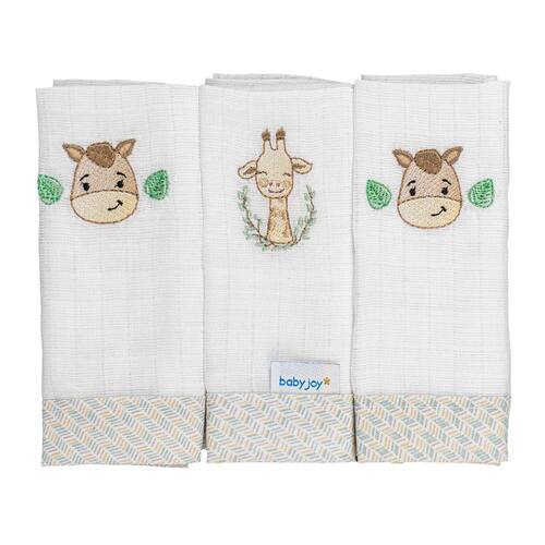 Características: - Contém 03 Unidades - Medidas Aproximadas: 34 cm x 40 cm - Tecido: 100% Algodão - Acabamento: Bordado - Marca: Baby Joy