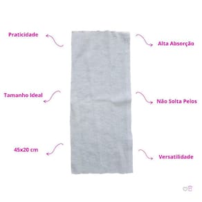 Alta Absorção: Limpeza mais eficiente, sem deixar resíduos ou sujeira. Não Solta Pelos: Superfícies sempre impecáveis. Versatilidade: Ideal para vidros, móveis, carros e muito mais. Praticidade: Torna a limpeza mais ágil, mantendo resultados perfeitos. Tamanho Ideal: Medidas aproximadas de 45x20 cm.