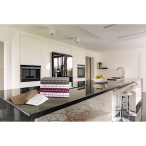 Os panos de copa são fundamentais na decoração de qualquer cozinha e a coleção Copa Chef é sua aliada nessa missão. Com fio tinto e desenho estilo positivo/negativo, os panos de copa da linha Copa Chef integram a linha Premium e são produzidos em 100% algodão, com 300g/m², conferindo à sua casa um charme todo especial.
