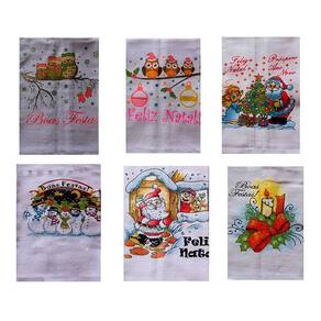 Conteúdo e Medidas: Panos de Prato Estampado Sacaria - Natal - 24 - Peças Tamanho (0,45cm x 0,71cm)