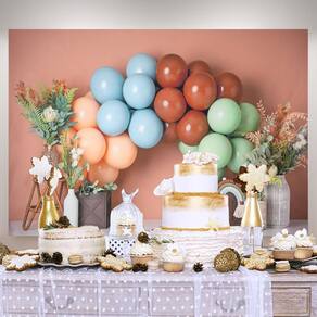 Material: Vinil Tamanho: 150 cm × 100 cm Peso: 150 g Cenário de festa vibrante — Com uma bela combinação de balões pastel macios e encantadores arranjos florais, perfeitos para criar uma atmosfera colorida e animada em qualquer evento. Perfeito para festas infantis — Ideal para comemorações de aniversário, chás de bebê ou fotografia de recém-nascidos, esse cenário divertido adicionará um toque especial extra às suas fotos ou à decoração do evento. Material de vinil durável — Feito de vinil de alta qualidade, esse pano de fundo é fácil de limpar, duradouro e adequado para vários usos, tornando-o perfeito para uma variedade de celebrações. Fácil de configurar — vem com ilhós convenientes para pendurar de forma rápida e fácil, tornando-o o cenário perfeito para sessões de fotos, festas ou até mesmo como peça decorativa de parede. Versátil e divertido — use-o como pano de fundo fotográfico colorido, suporte de cabine fotográfica ou como elemento decorativo para qualquer festa, evento ou celebração infantil.