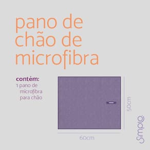 "Conheça o Pano de microfibra para chão com furo da Simplo.Prático e durável, é ótimo para secar e limpar superfícies e é ideal para limpar e secar pisos lisos frios, sintéticos ou madeira.Proporciona uma limpeza com menos esforço, água e produtos químicos! Possui alta absorção, não solta fiapos e atrai e retém poeira. Além disso, tem furo para usar com rodo, mop ou vassoura.São 100% de microfibra. Antes de guardar, lave bem e coloque para secar na sombra. Pode limpar em máquina de lavar, sem amaciante e sem misturar com tecidos que soltam fiapos. Não use em superfícies ásperas, não utilize alvejante e nem coloque em secadora ou lave a seco. Mantenha longe de fontes de calor.Leve funcionalidade e modernidade para sua casa!É só passar o cabo do rodo, mop ou vassoura pelo furo e envolver a base com o pano.Utilize seco para tirar o pó e secar.Utilize úmido para limpar. Ideal para limpar e secar pisos lisos frios, sintéticos ou madeira.- Com furo para usar com rodo, mop ou vassoura.- Limpeza com menos esforço, menos água e menos produtos químicos- 100% microfibra- Eletrostática: atrai e retém a poeira- Alta absorção: absorve até 8x o seu peso em água- Durável- Não solta fiaposÉ simplo. A microfibra tem fios muito finos (100x mais finos que fio de cabelo!). Isso faz com que até as menores sujeiras sejam retiradas por ela.Antes de usar, garanta que os panos estejam limpos - a sujeira pode arranhar objetos. Antes de guardar, lave bem e coloque para secar na sombra.Pode:- Ser lavado na máquina de lavar (até 40°C, sem amaciante e sem misturar com tecidos que soltam fiapos).Não pode:- Usar em superfícies ásperas.- Deixar no sol ou perto de outras fontes de calor.- Limpar superfícies ásperas, usar alvejante, colocar na secadora ou lavar a seco." Marca: SIMPLO
