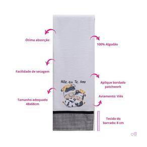 Pano De Prato Bordado Patchwork Mãe 100% Algodão 48X68 -4 Pç