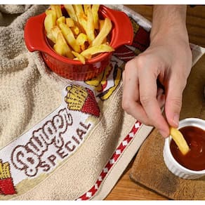 Pano de prato jacquard 50x70cm bistro burguer cavhome Pano de copa Pano de copa da cavhome são ideais para você que busca estilo e qualidade para sua cozinha. Esse produto possui um tamanho maior do que o padrão presente no mercado. Eles contam com aplicação de amaciante hidrófilo que auxiliam em uma melhor absorção. Produzido com massa pura e fibras longas e composto por fio 100% algodão brasileiro que possibilita maior durabilidade e irá te proporcionar o melhor toque e maciez. Por conta de seu acabamento em jacquard é considerado um tecido nobre em razão de sua complexidade na produção.