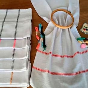 Conteúdo e Medidas: Pano de Prato c/ Barra p/ Bordar Sacaria - 06 Peças Tamanho (45cm x 71cm)
