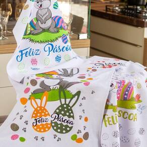 Pano De Prato Lomaer Sacaria Pascoa 50cmx70cm Estampado 12Und. Branco