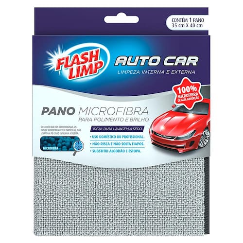 O pano microfibra para polimento e brilho da FlashLimp também pode ser usado para limpeza a seco, cristalização e limpeza de vidros. Substitui o algodão, a estopa e não risca.
