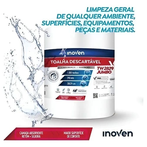 Pano Wiper Jumbo Roll Com 1000 Panos Descartáveis 50G Inoven