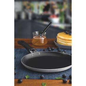 Panquequeira Tramontina Profissional em Alumínio Acabamento Externo Lixado com Revestimento Interno Antiaderente Starflon T3 22 cm 0,6 L A Panquequeira Tramontina Profissional em Alumínio Acabamento Externo Lixado com Revestimento Interno Antiaderente Starflon T3 22 cm de diâmetro 0,6 L é a escolha certa para você realizar os preparos de panquecas e tapiocas sem que grudem no fundo da frigideira, pois possui revestimento interno antiaderente Starflon T3 com maior poder de antiaderência, maior resistência a abrasão, maior durabilidade, maior facilidade na limpeza e livre de PFOA. Produzida em alumínio com acabamento externo lixado, proporciona para a cozinha beleza e durabilidade. Seu cabo de baquelite antitérmico evita possíveis queimaduras. A linha Frigideiras Profissionais da Tramontina é uma opção que não pode faltar na sua cozinha se você deseja preparos ágeis e práticos. Informações Gerais Corpo de alumínio com acabamento externo lixado. Espessura da peça de 2 mm: distribuição uniforme do calor. Revestimento interno de antiaderente Starflon T3. O único com a tecnologia T: maior poder de antiaderência; maior resistência à abrasão; maior durabilidade; mais fácil para limpar e livre de PFOA, garantindo uma resistência à abrasão mais de 15.000 ciclos baseado na Norma ABNT NBR 15321:2013. Cabo de baquelite. Maior resistência antitérmica. Sistema de fixação do cabo com 2 rebites. Estabilidade no manuseio.
